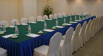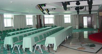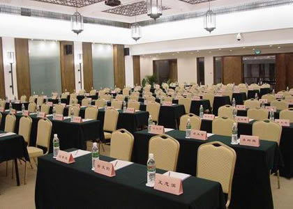 課桌式會場,會議室課桌式擺放也有所不同,有的從中間設通道,有的從兩面設通道,此照片為通道在兩側。