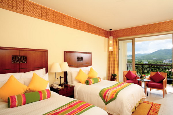 三亞萬豪度假酒店由世界知名公司W(wǎng)ilson & Associates設(shè)計(jì)。來自新加坡的設(shè)計(jì)師大膽自由的采用天然原石與暖色調(diào)木質(zhì)材料,結(jié)合當(dāng)?shù)孛匀说淖匀伙L(fēng)景和質(zhì)樸的風(fēng)土人情襯托出其自然、時尚的獨(dú)特風(fēng)格。酒店絕大部分客房均設(shè)有特大觀景陽臺,將潔白細(xì)軟的海灘、景色怡人的園林、優(yōu)美的山光水色、高爾夫球場景致一覽無遺?头績(nèi)部裝修舒適溫馨,從房間設(shè)施到小物品擺設(shè)都將感受到三亞萬豪度假酒店用“心”之處。三亞萬豪度假酒店引以為傲的水療中心“泉”座落在一片寧靜的園林中。五座相對獨(dú)立的豪華水療閣,透過花園更能遠(yuǎn)眺美麗的南中國海景。精心準(zhǔn)備的療程項(xiàng)目包括美顏?zhàn)o(hù)理、身體理療、按摩護(hù)理和精選水療套裝,為您從內(nèi)至外打造煥然一新的感覺。美酒佳肴在三亞萬豪度假酒店更是隨處可見。萬豪軒中餐廳傳統(tǒng)精篆的中式佳肴;全新江戶銀日餐廳舒適柔和的色彩與傳統(tǒng)的日式裝修風(fēng)格相得益彰,寬敞的座位空間營造舒適的就餐環(huán)境。伴隨著優(yōu)雅的日式音樂,品嘗具有現(xiàn)代感的日式美食,開放獨(dú)立的特色專區(qū)為您展示日式美食的制作過程;萬豪咖啡廳豐富的中西零點(diǎn)菜單和美味的自助餐;海韻風(fēng)情吧清涼飲料和迷人海景給予味覺和視覺無限享受。每間餐廳和酒吧都能滿足您挑剔的胃口。偏愛戶外的朋友也無需擔(dān)心,因?yàn)樗胁蛷d設(shè)有戶外雅座,讓您在享受美食的同時感受微微海風(fēng)的輕拂。得天獨(dú)厚的自然環(huán)境,令人垂涎的美酒佳肴,多姿多彩的娛樂活動,加上完善的會議設(shè)施,三亞萬豪度假酒店迅速成為舉辦各種活動和商務(wù)會議的最佳場所。擁有11間會議室,總面積達(dá)1250平方米。無柱豪華宴會廳,可分隔成五部分,另外六間會議室滿足中小型商務(wù)會議需求。高素質(zhì)的會議統(tǒng)籌隊(duì)伍,熱情悉心的宴會服務(wù),為會議圓滿召開提供最佳保障。親臨亞龍灣領(lǐng)略“天下第一灣”真正魅力所在,親臨三亞萬豪度假酒店體驗(yàn)夢寐以求的悠閑假期。