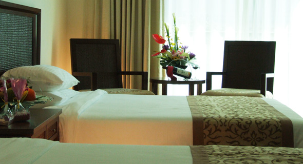 庭景雙床房(副樓),面積36平方米,樓層2-6層,無陽臺,雙床房(1.2*1.8米),免費(fèi)寬帶
