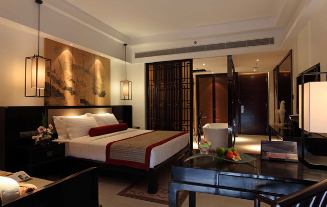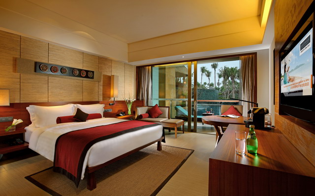 豪華池畔房,面積45平方米,樓層1層,有陽臺,露臺可直通泳池,120-180度海景,大床(1.8*2米),雙標(1.2*2.1米),有浴缸,免費寬帶