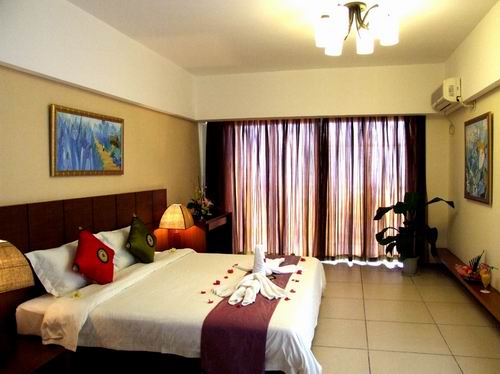 三亞玉海國際度假酒店緊鄰三亞市區(qū),背靠三亞灣新城,面向遼闊的南中國海,與著名的天涯海角、西島、南山佛教文化苑風景區(qū)相毗臨,與佛光普照的108米南海觀音遙遙相望,依山傍海,景色秀麗。距市區(qū)僅5分鐘車程,距三亞鳳凰國際機場9分鐘車程,距天涯海角10分鐘車程,交通便捷,環(huán)境優(yōu)美。玉海國際度假公寓為客人提供24小時專職私人管家服務,我們的私人管家是客人唯一面對的酒店服務人員,在客人入住酒店后,私人管家就成了客人的“家庭成員之一”,照顧他們的起居生活,幫助客人解決各種問題,處理投訴,并使客人在店期間能享受到更多的其它服務。