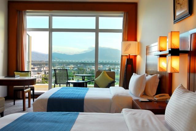 高級海景房,面積42平方米,樓層3-4層,有陽臺,180度海景,前面有遮擋物,大床(1.8*2米),雙床(1.2*2米),有浴缸,免費(fèi)寬帶